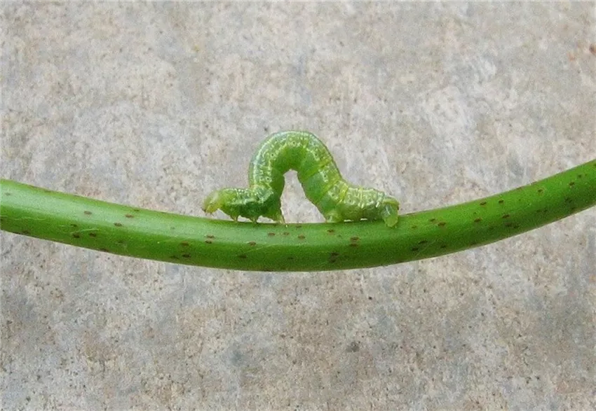 Zu diesem Zeitpunkt sind die grünen Larven des Kleinen Frostspanners (Operophtera brumata) deutlich zu erkennen. Auffällig ist die schiebende Art der Fortbewegung, bei der sich der Körper abwechselnd katzenbuckelartig krümmt und wieder streckt. Bei starkem Befall kann es zu Kahlfraß kommen.