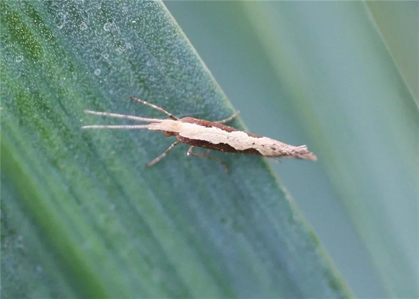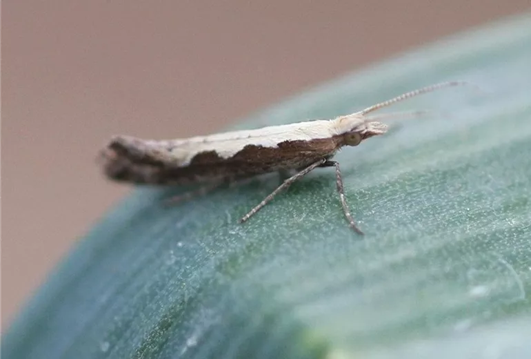 Die Lauchmotte (Acrolepiopsis assectella) ist ein Kleinschmetterling, der in zwei Generationen pro Jahr auftritt. Ab Juni ist mit dem Flug der Falter zu rechnen. Die Eier werden an die Blätter gelegt. Aus ihnen schlüpfen die kleinen Räupchen, die durch ihren Fraß die beschriebenen Symptome verursachen.