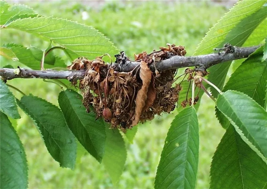 Ein Verkahlen der ganzen Krone, wie es bei Sauerkirsche beobachtet werden kann, findet i.d.R. nicht statt.