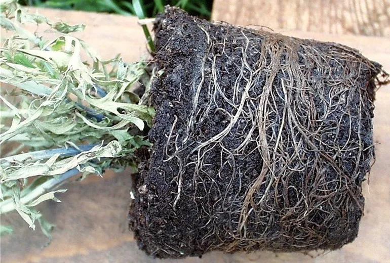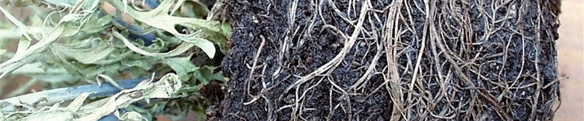 Nimmt man die betreffenden Pflanzen aus dem Topf heraus, so fällt auf, dass der Wurzelballen in der Regel recht nass ist. Häufig erscheinen die Wurzeln grau oder braun. Die Blumenerde riecht muffig faul.