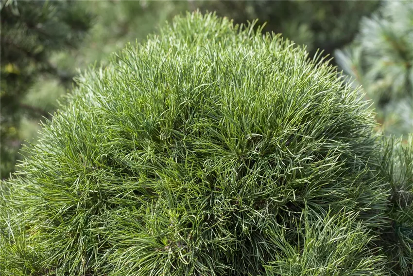 Die Kugeln können dann über einer Schale aufgehangen werden. Die Schale fängt das Wasser auf, das die Kugeln durch das Tränken verlieren können. Und dann können die Zweige in die Kugeln gesteckt werden. Die Zweige sollten vorher in einer Länge abgeschnitten werden, damit die Kugeln anschließend auch gleichmäßig aussehen. Am besten an der Unterseite der Kugel anfangen und die Zweige dicht an dicht in das Steckmoos stecken. Schräg abgeschnitten lassen sich die Zweige noch besser in das Steckmoos stecken. Verschiedene Zweige im Wechsel bringen Leben in die grünen Kugeln.