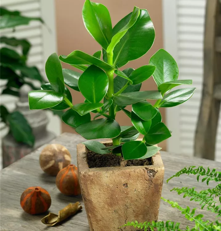 Die immergrünen Blätter des Balsamapfels sind glänzend, rundlich, dickfleischig.