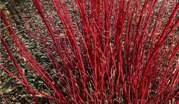 Die Triebe von Cornus alba sind blutrot.
