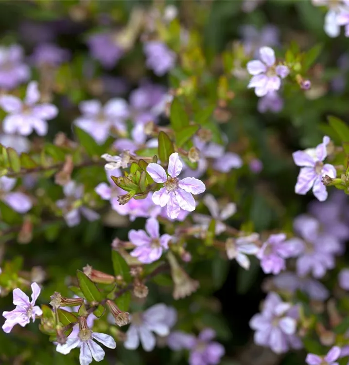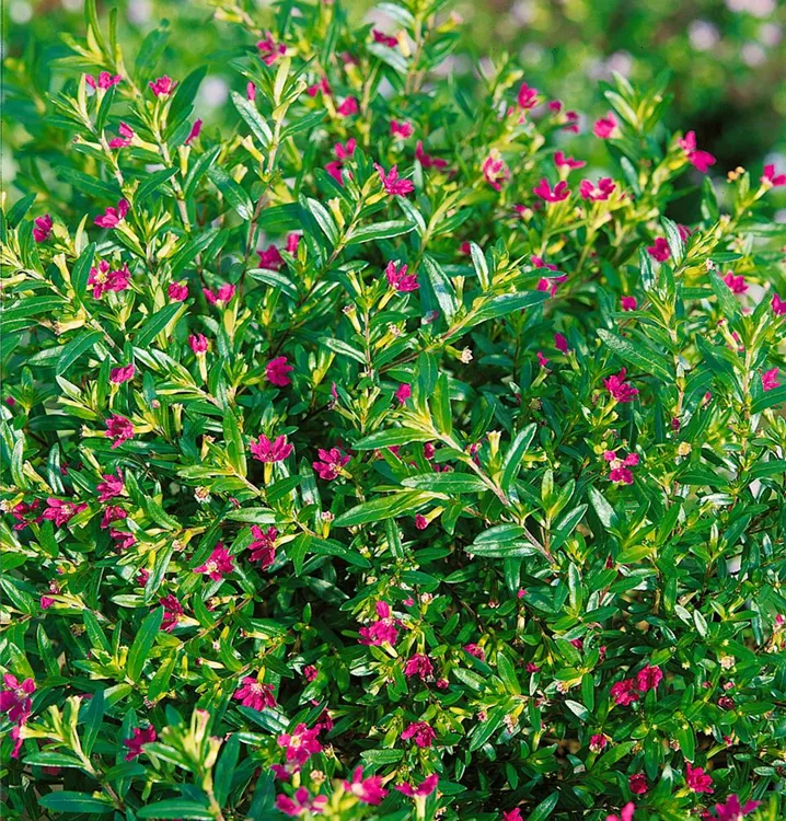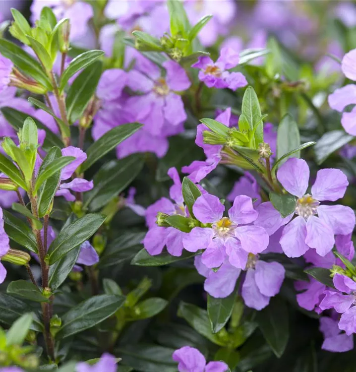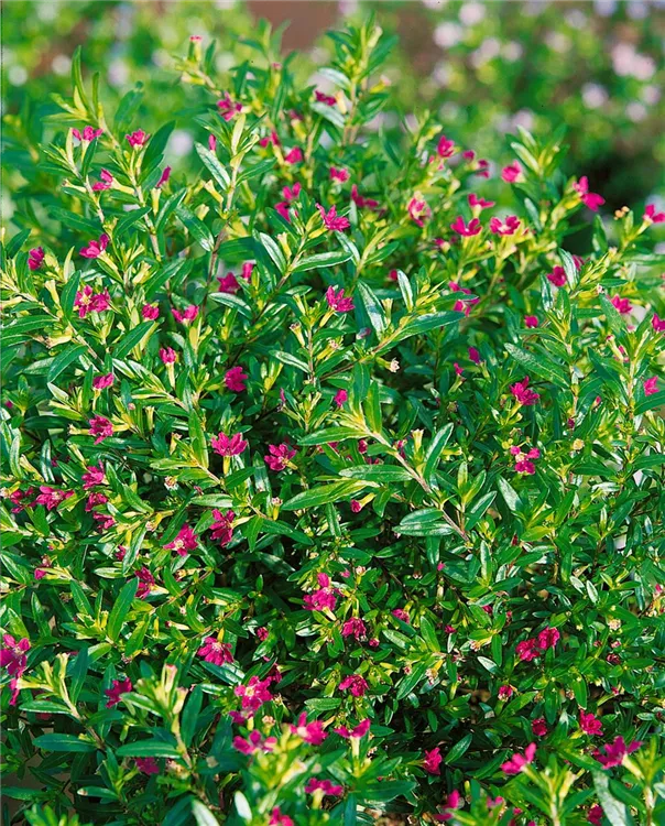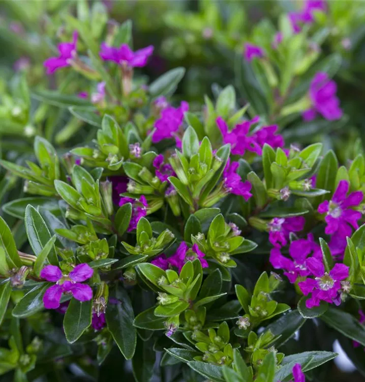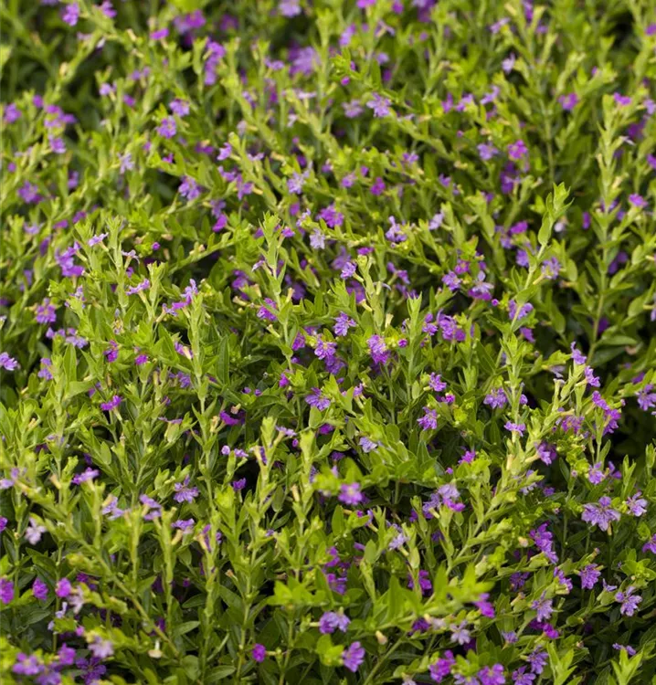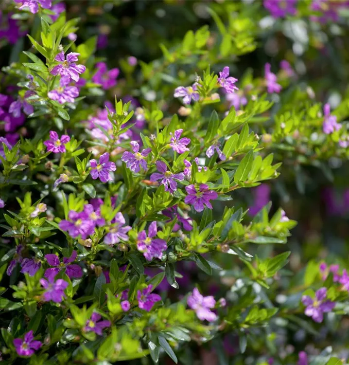Die Köcherblume (Cuphea hyssopifolia) ist eine beliebte Pflanze für den Balkon. Die unzähligen Blüten erscheinen, je nach Sorte, in verschiedenen Farben die ganze Saison hindurch. Ein sonniger bis halbschattiger Standort und ein durchlässiges Substrat werden bevorzugt.