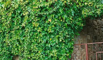 Efeu als Haftwurzler eignet sich besonders gut zur Begrünung von Hauswänden. Zur Stabilisierung sollte hier eine Konstruktion aus Holz gewählt werden.
