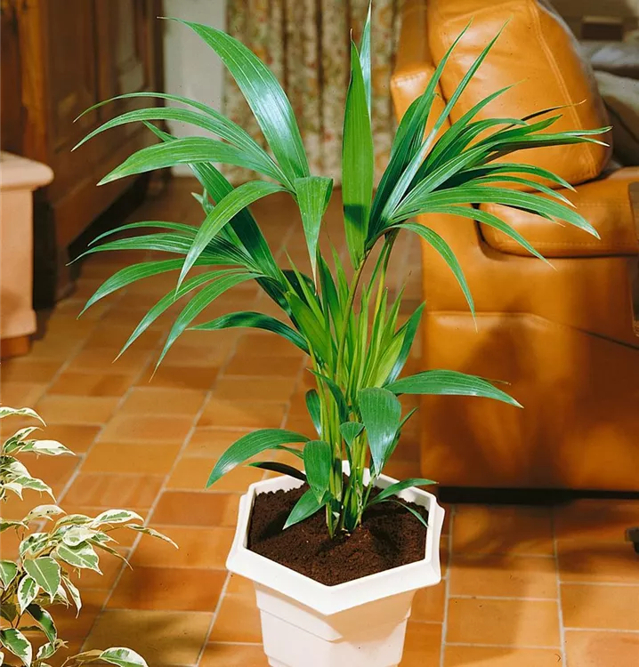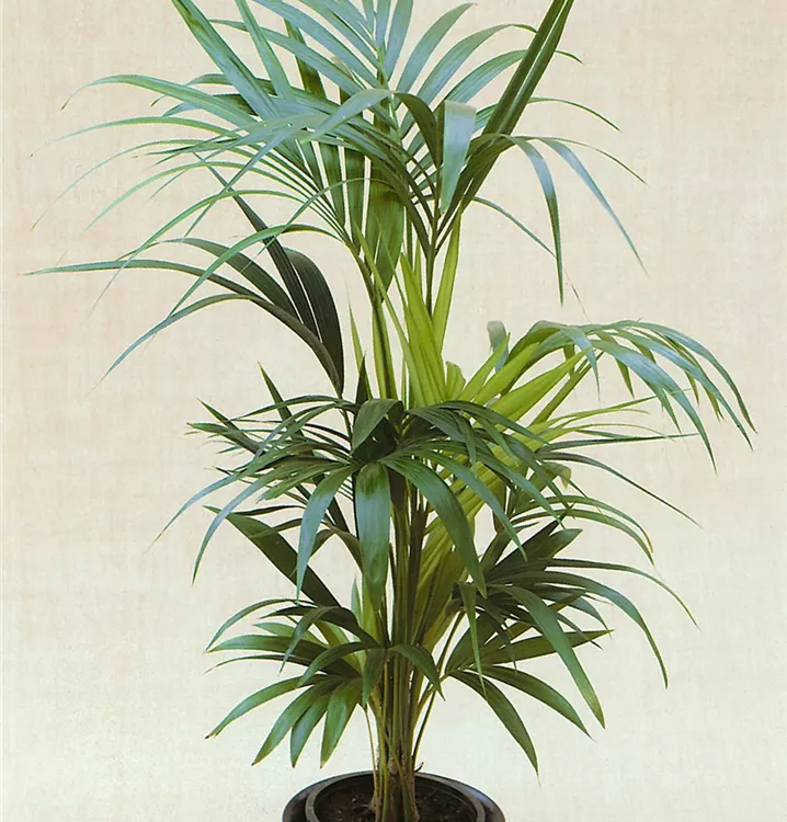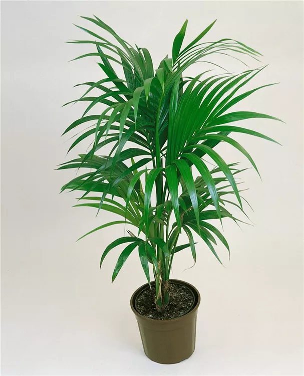 Die Kentiapalme (Howea forsteriana) trägt dunkelgrüne, tief geschlitzte Blätter. Diese aufrechte Pflanze gedeiht am besten an einem halbschattigen Standort.