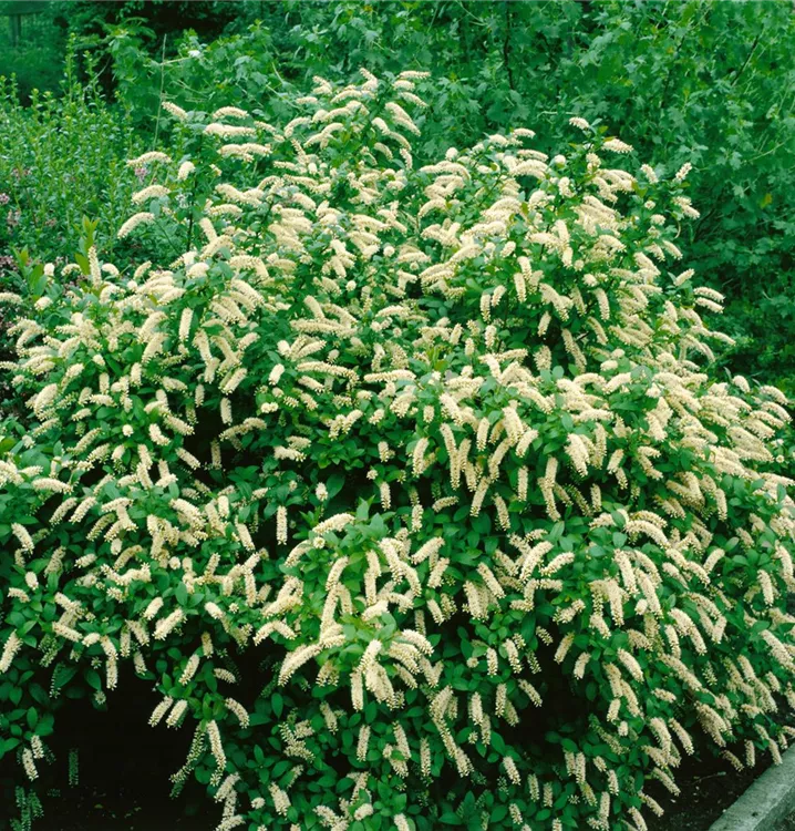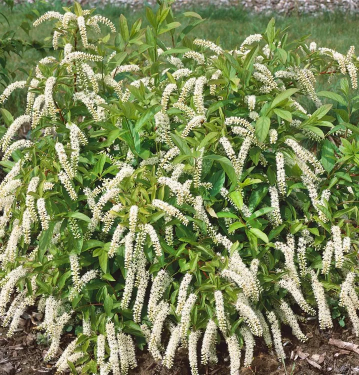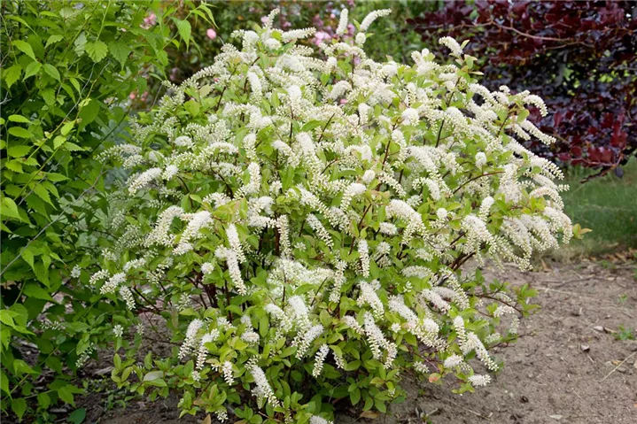 Die Amerikanische Rosmarinweide (Itea virginica) ein ausladender, überhängender Kleinstrauch, der, je nach Sorte, Blüten in verschiedenen Farben hervorbringt. An einem sonnigen Standort mit humosem, kalkfreiem, saurem Boden erreicht sie gewöhnlich eine Höhe von ca. 1,5 m und wird ca. 1,5 m breit.