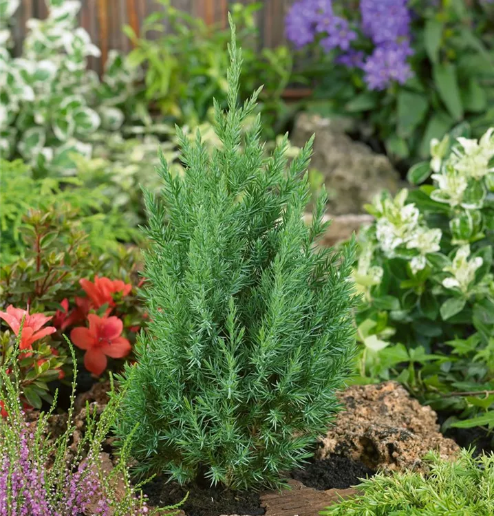 Der Blaue Kegel-Mooswacholder 'Stricta' weist eine gute Frosthärte auf.