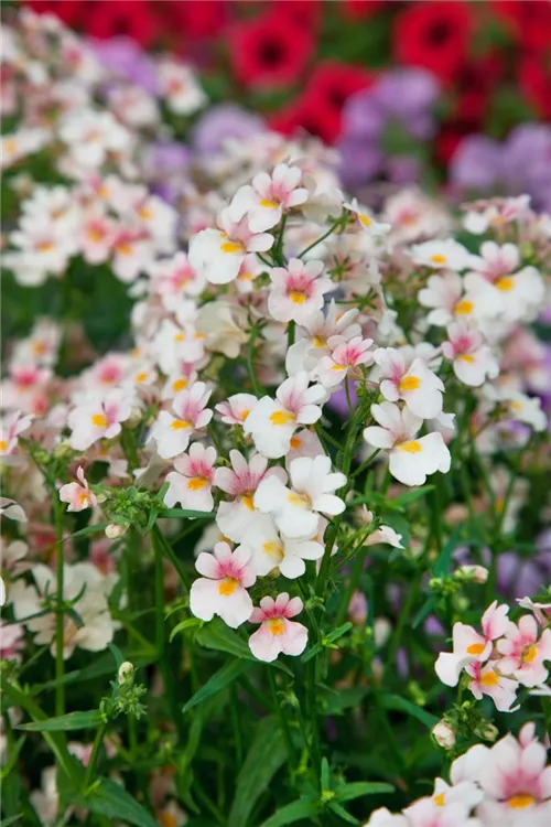 Der Elfenspiegel (Nemesia) ist eine beliebte Pflanze für den Balkon. Die unzähligen Blüten erscheinen, je nach Sorte, in verschiedenen Farben die ganze Saison hindurch. Ein sonniger bis halbschattiger Standort und ein durchlässiges Substrat werden bevorzugt.