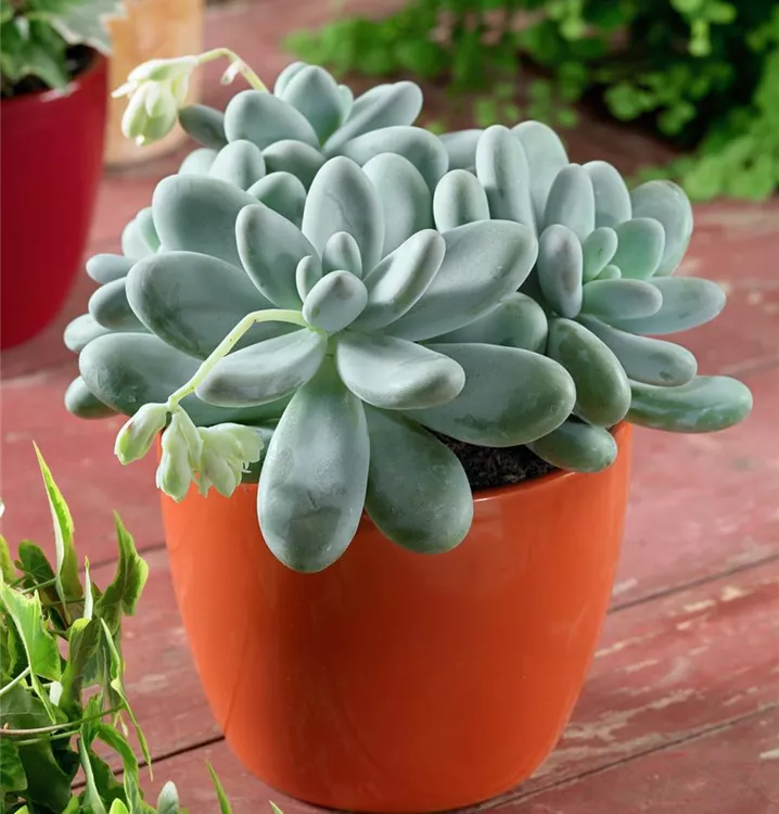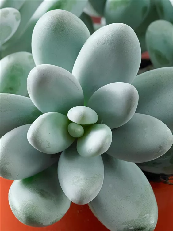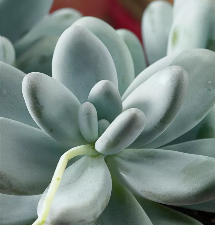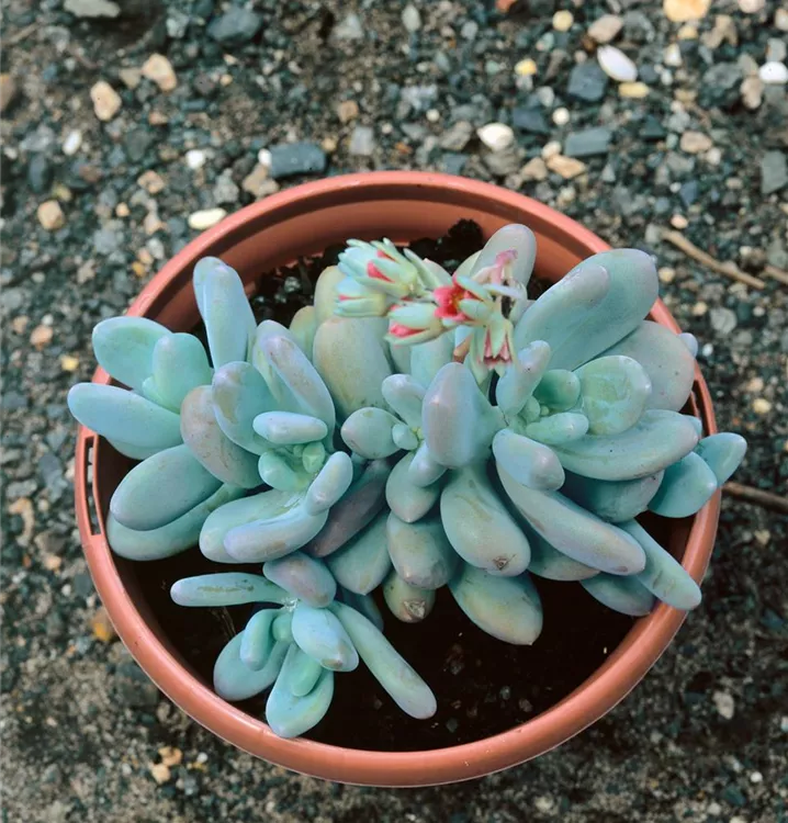 Der Mondstein (Pachyphytum oviferum) ist eine Pflanze mit blau-grauen Blättern. Diese rosettenartige Pflanze gedeiht am besten an einem sonnigen Standort.