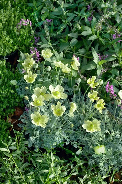 Papaver miyabeanum bildet schalenförmige, hellgelbe Blüten ab Mai.