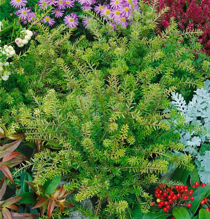 Diese Pflanze könnte in ihren Ansprüchen bzw. Aussehen der Steineibe ähnlich sein: Cephalotaxus (Pflaumeneibe).
