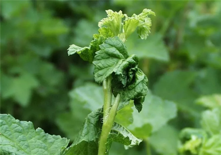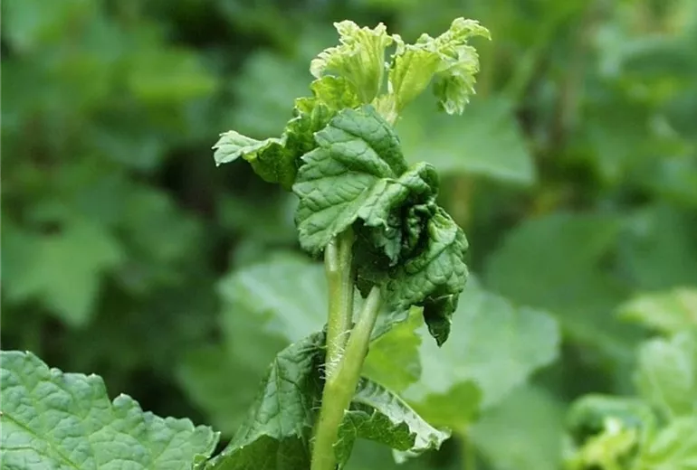 An Schwarzer Johannisbeere, kommt es im Frühjahr zu leichen Blattdeformationen und Aufhellungen der Blattadern durch die Gänsedistellaus (Hyperomyzus lactucae).