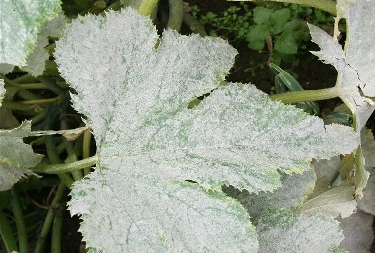 An Zucchini kommen die gleichen Vertreter (Sphaerotheca fuliginea, Erysiphe cichoracearum) aus der Gruppe der Echten Mehltaupilze vor, die auch Gurke und Kürbis schädigen können.