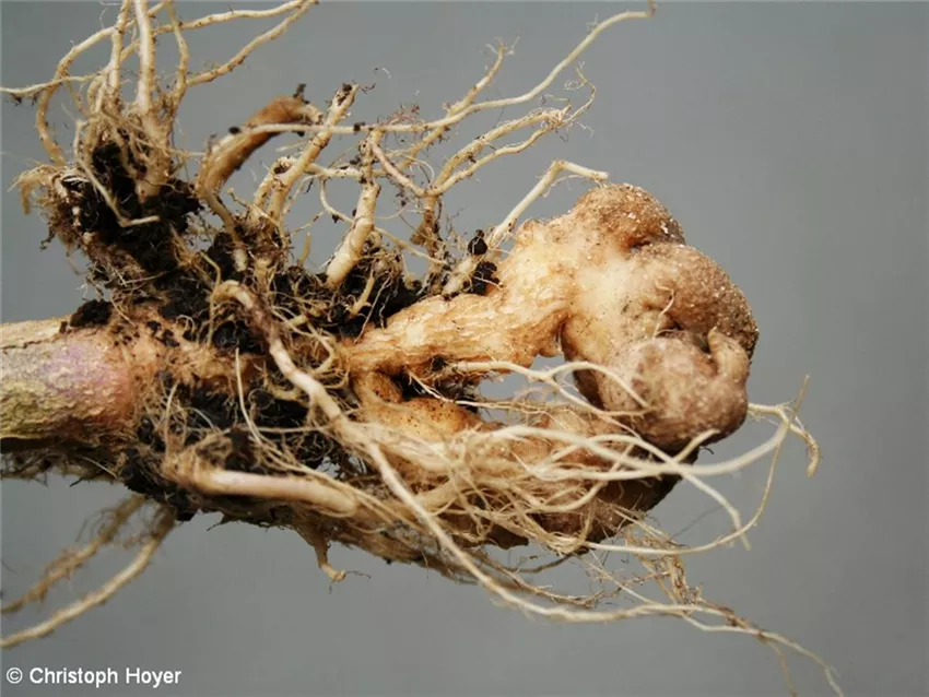 Die Kohlhernie wird durch einen Schleimpilz (Plasmodiophora brassicae) verursacht, der vom Boden her die Wurzeln des Kohlgemüses befällt.