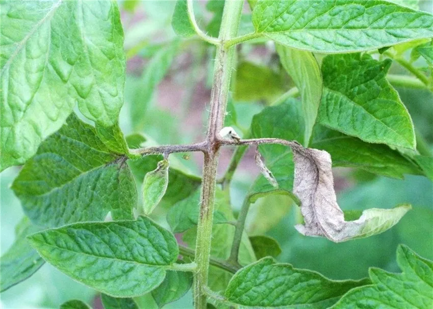 Im Sommer zeigen Tomaten während oder nach feuchten Witterungsperioden auf den Blättern anfangs grau grüne, später braune Flecken; einzelne Fiederblättchen sterben ganz ab. Auch an den Blattstielen und am Stängel findet man meist scharf abgegrenzte dunkelbraune Stellen.
