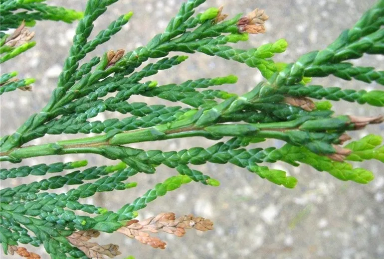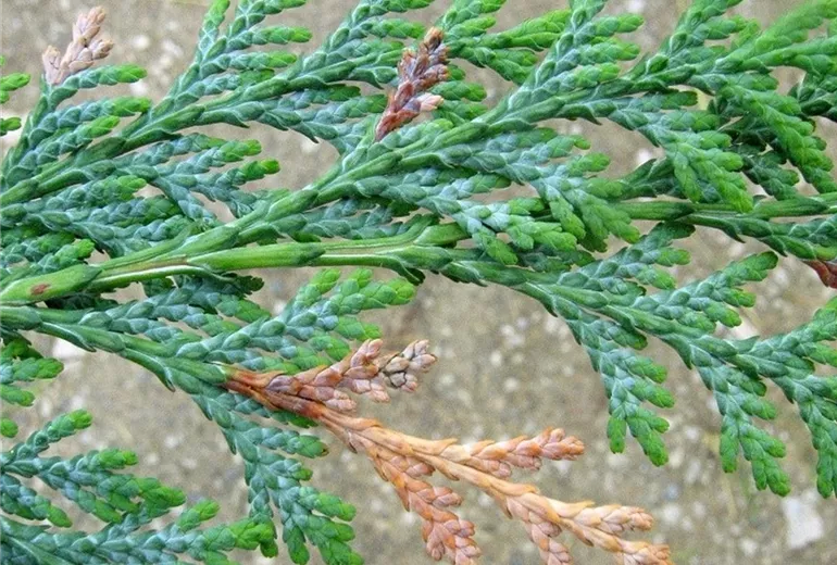 Pilzliches Triebsterben kann durch verschiedene Schadpilze verursacht werden, die vor allem bei schlecht gepflegten Hecken in feuchter Lage verstärkt auftreten können. An Scheinzypressen können zwei verschiedene Miniermottenarten vorkommen: die Thujaminiermotte (Argyresthia thuiella) und die Wacholderminiermotte (Argyresthia trifasciata). Beide Arten sind eng miteinander verwandt, unterscheiden sich allerdings in ihrem Lebenszyklus.Sie sind kleine ca. 5 mm lange, mottenartige Kleinschmetterlinge.