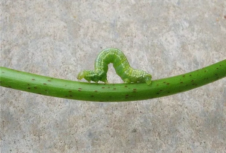 Am häufigsten dürfte der Kleine Frostspanner auftreten, dessen grüne Larven im Mai deutlich zu sehen sind.