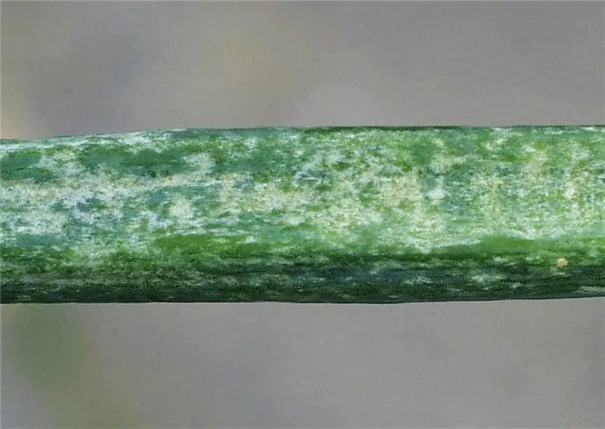 Durch die Saugtätigkeit des Zwiebelthripses (Thrips tabaci), eines ca. ein Millimeter langen, schmalen Insektes, entsteht das genannte Schadbild. Günstige Entwicklungsbedingungen findet dieser Schädling in warmen Sommern, in denen es auch zu stärkerem Befall kommt.
