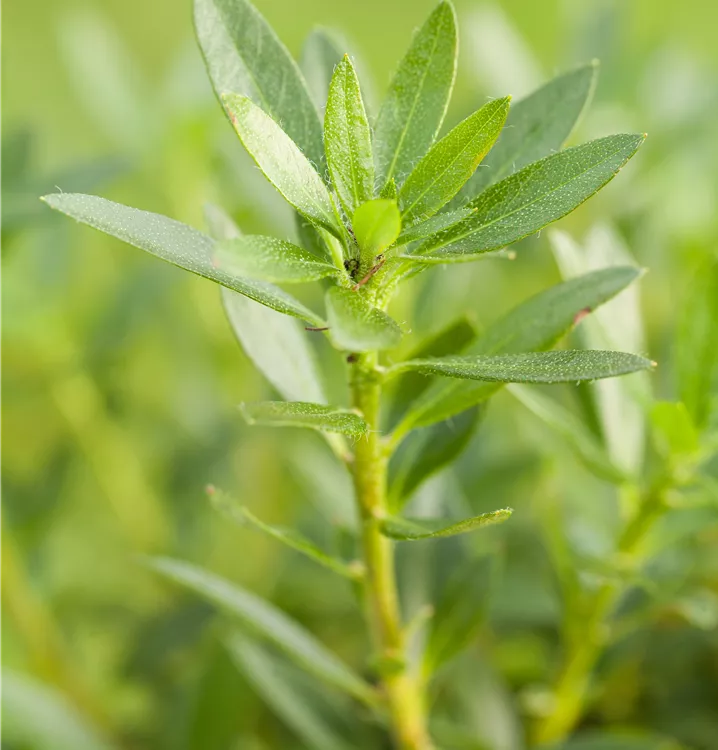 - dunkelgrüne, immergrüne Blätter